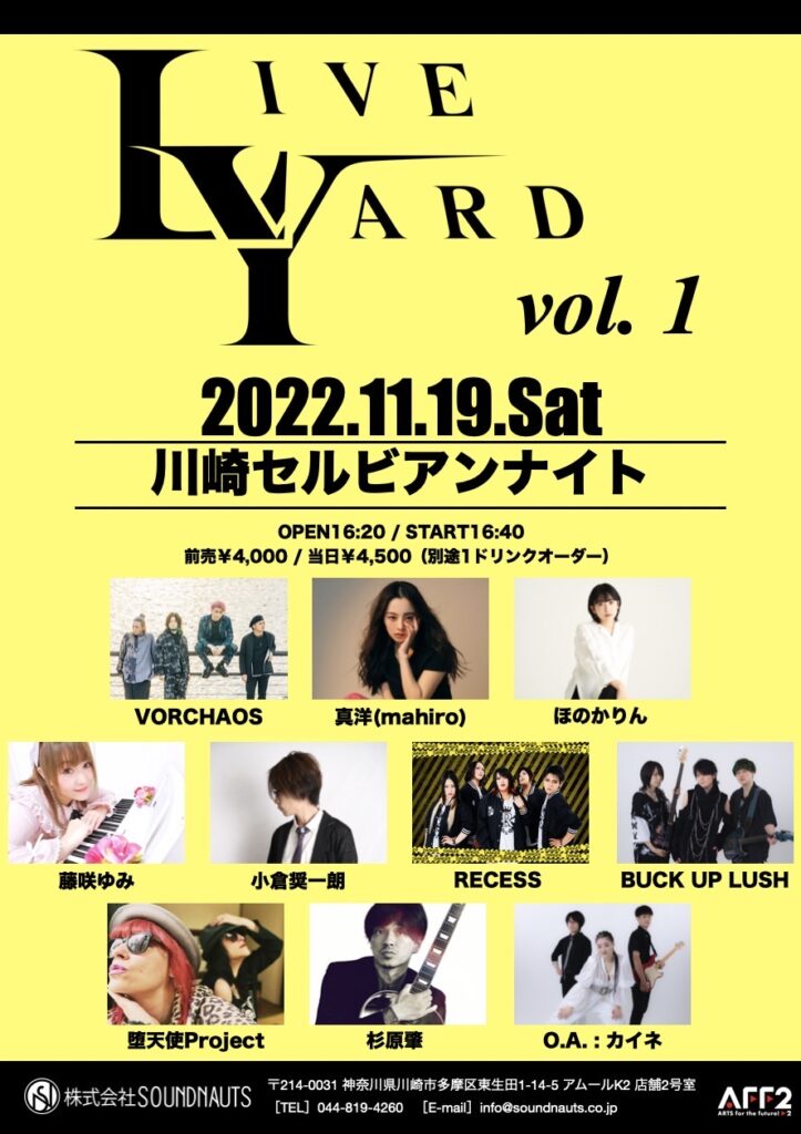 VORCHAOS/真洋(mahiro)/ほのかりん/RECESS/BUCK UP LUSH/小倉奨一朗/藤咲ゆみ/堕天使Project/杉原肇/オープニングアクト:カイネ